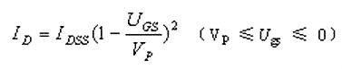 式中IDSS为饱和漏电流,VP为夹断电压。