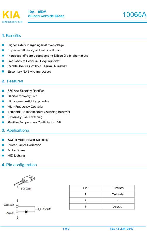 KSF10065A 10A/650V PDF资料及现货供应厂家-KIA MOS管