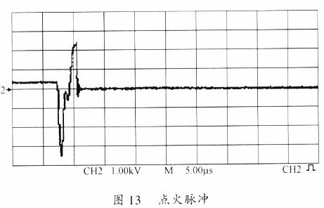 图11显示了输出电流换向时驱动信号的变化。图12为输出电流换向时电感电流的变化,可以看到电流的过冲相当小。图13为点火脉冲,由于点火是在低频情况下进行,所以点火成功率很高。图14为灯正常工作时的电流和电压波形,可以看出灯电流基本没有电流过冲的情况发生。整机效率约为90%,波峰系数为1.1。(插图)