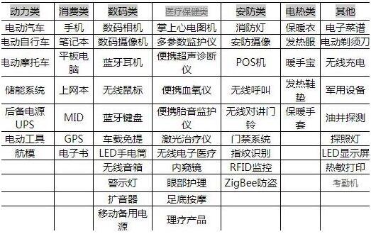 电池主要应用在消费类产品、数码类产品、动力产品、医疗和安防等。