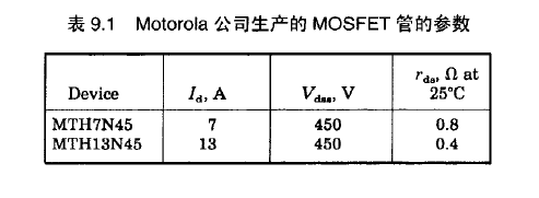 表 9.1 给出了 Motorola 公司生产的塑料封装 、额定电压为 450V 的 MOSFET 管的各种 数据。