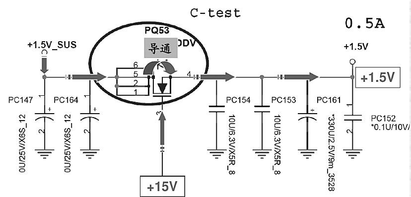 4.mos开关完成电压通断的例子由+1.5V-SUS产生+1.5V电路