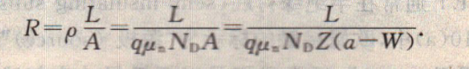 其中ND是施主浓度.A[=z(a一W)]是电流流动的截面积,而w是肖特基势垒的耗尽区宽度.