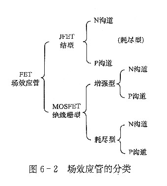 场效应管可分为两类:一类足结型场效应管,另一类是绝缘栅型场效应管,也称MOS管实亿国际。结型场效应管依据其沟道所采用的半导体资料,又分为N沟道和P沟道两种;绝缘栅型场效应管除有N沟道和P沟道之格外,还有加强型与耗尽型之分。如图6-2所示。
