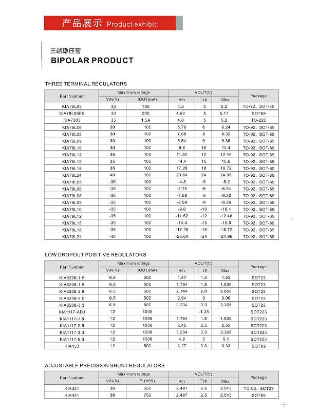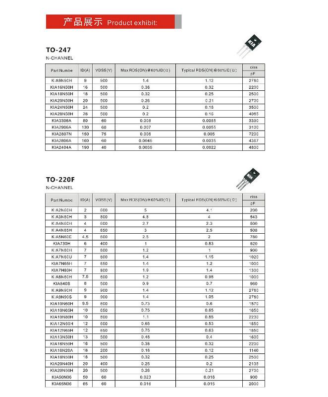 KIA半导体专业生产MOS管场效应管实亿国际厂家(国家高新技术企业)成立于2005年,公司成立初期就明确立足本市场,研发为先导,了解客户需求,运用创新的集成电路设计方案和国际同步研发技术,结合中国市场的特点,向市场推出了BIPOLAR,CMOS,MOSSFET等电源相关产品,产品的稳定性,高性价比,良好的服务,以及和客户充分的技术,市场沟通的严谨态度.