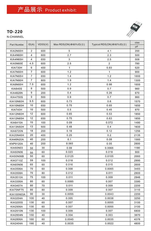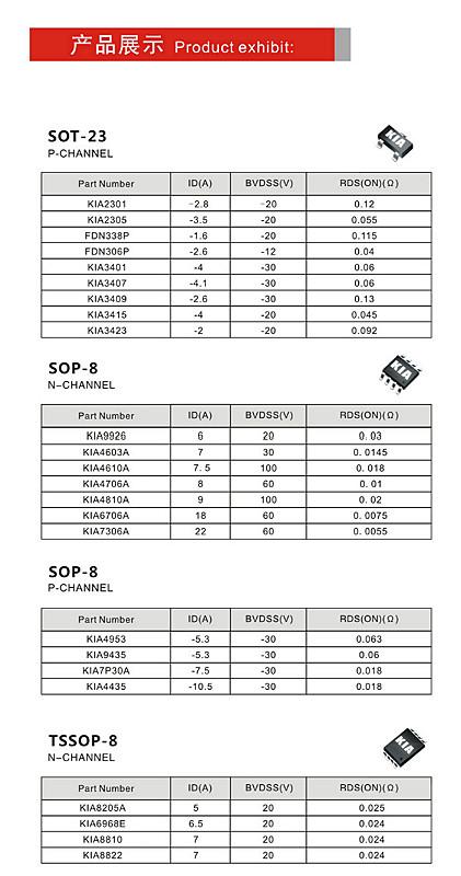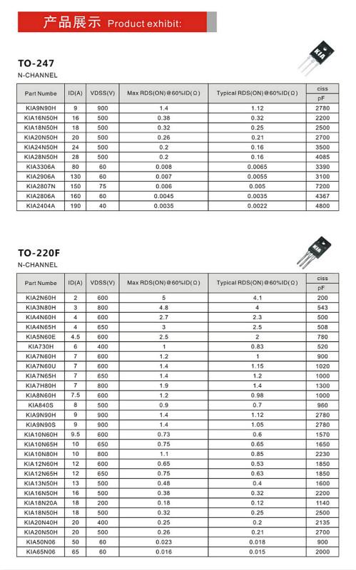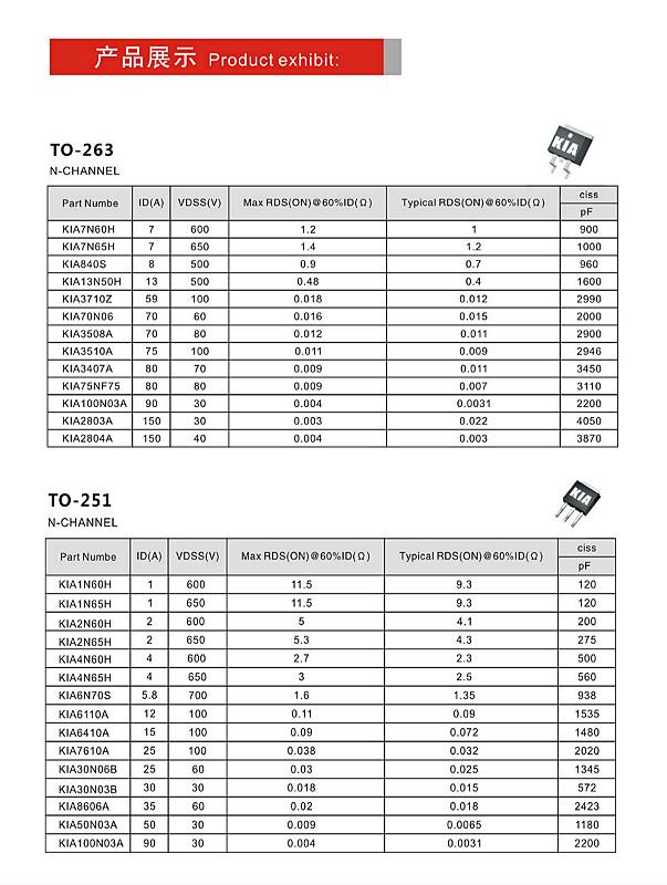 KIA本着“携手客户,创新设计,共同提升,服务市场”的理念,期待在您的大力支持下,使KIA成为MOSFET器件领域的优秀mos管品牌。