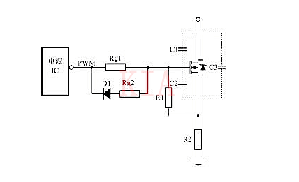 这使关断时间减小,同时减小关断时的损耗。Rg2是防止关断的时电流过大,把电源IC给烧掉。