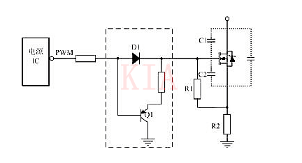 在第二点介绍的图腾柱电路也有加快关断作用。当电源IC的驱动能力足够时,对图 2中电路改进可以加速MOS管关断时间,得到如图 4所示电路。