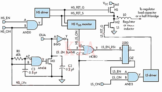 出于简单,图1省去了驱动HS_EN的电路块。简单地采用相同的电路发出LS_EN信号监测LS_FET_G,以及LS_ON信号产生HS_EN信号。