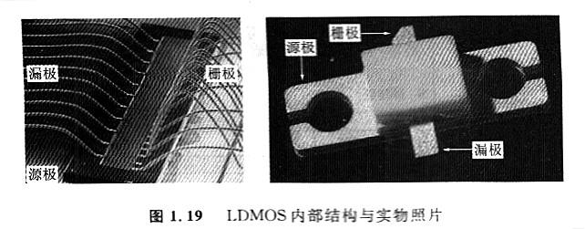 槽栅构造有利于进步电流控制才能,但是结电容大,不利于工作频率的提高。将平而栅极构造与双扩散有机分离起来,就LDMOS(Lateral DoubleDiffuse MOSFET,横向双扩散MOSFET)(图1.18)。