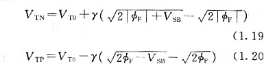 NMOS晶体管的阈值电压VTN、PMOS晶体管的阈值电压VTP分别由下式给出: