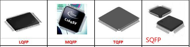 四侧引脚扁平封装。表面贴装型封装之一,引脚从四个侧面引出呈海鸥翼(L)型。基材有陶瓷、金属和塑料三种。从数量上看,塑料封装占绝大部分。当没有特别表示出材料时, 多数情况为塑料QFP。塑料QFP 是最普及的多引脚LSI 封装。不仅用于微处理器,门陈列等数字逻辑LSI 电路,而且也用于VTR 信号处理、音响信号处理等模拟LSI 电路。引脚中心距有1.0mm、0.8mm、0.65mm、0.5mm、0.4mm、0.3mm 等多种规格。0.65mm 中心距规格中最多引脚数为304。日本将引脚中心距小于0.65mm 的QFP 称为QFP(FP)。但现在日本电子机械工业会对QFP 的外形规格进行了重新评价。在引脚中心距上不加区别,而是根据封装本体厚度分为QFP(2.0mm~3.6mm 厚)、LQFP(1.4mm 厚)和TQFP(1.0mm 厚)三种。另外,有的LSI 厂家把引脚中心距为0.5mm 的QFP 专门称为收缩型QFP 或SQFP、VQFP。但有的厂家把引脚中心距为0.65mm 及0.4mm 的QFP 也称为SQFP,至使名称稍有一些混乱。QFP 的缺点是,当引脚中心距小于0.65mm 时,引脚容易弯曲。为了防止引脚变形,现已出现了几种改进的QFP 品种。如封装的四个角带有树指缓冲垫的BQFP(见BQFP);带树脂保护环覆盖引脚前端的GQFP(见GQFP);在封装本体里设置测试凸点、放在防止引脚变形的专用夹具里就可进行测试的TPQFP(见TPQFP)。在逻辑LSI 方面,不少开发品和高可靠品都封装在多层陶瓷QFP 里。引脚中心距最小为0.4mm、引脚数最多为348 的产品也已问世。此外,也有用玻璃密封的陶瓷QFP(见Gerqa d)。