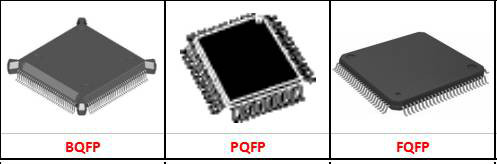 带缓冲垫的四侧引脚扁平封装。QFP 封装之一,在封装本体的四个角设置突起(缓冲垫) 以防止在运送过程中引脚发生弯曲变形。美国半导体厂家主要在微处理器和ASIC 等电路中采用此封装。引脚中心距0.635mm,引脚数从84 到196 左右。