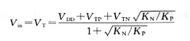 由于逻辑阈值电压是式(10.1)中的-IDS与式(10.2)中的IDS相等时的电压,所以应用这个关系能够求得Vin: