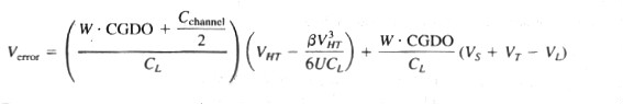 对于快跃变的情况,与沟道电阻和沟道电容有关的时间常数限制着流向电压源的电荷量,因此当晶体管处于导通状态时,一些注入的沟道电荷就提供给CL以影响其匕的总电荷。