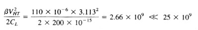 考虑这样一种情况,Vφ为高电平的时间T=0.1μS,C=0.2pF,那么导通电阻rON必须小于100kΩ才能满足电荷转移时间等于5倍时间常数。对于5V的时钟摆幅和2.5V的Vin以及图4.1-4中示出的W=L的MOS管,rON≈6.4kΩ。此值在所要求的时间内进行电荷转移来说已足够小。我们希望开关尽可能小(即具有最小的WxL),从而可以减小来自栅极的电荷馈通。