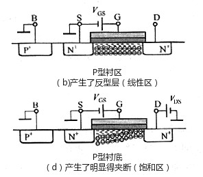 另外,当VGS增加时,由丁感应沟道变厚,沟道电阻减小,饱和漏极电流会相应增大。