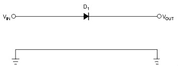 图1 一只串联二极管保护系统不受反向极性影响,二极管有0.7V的压降