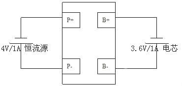 用万用表分别测3+、P+间及B-、P-间电压。所得电压值即为保护板的内阻,因为电路中的电流为LA,根据欧姆定律:R=U/I。