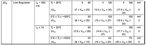 线性调整率是输入电压有一定的变化范围,那么输出电压变化多少,如下图是7805的线性调整率