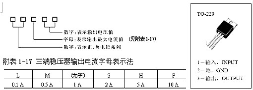 例如:78M05三端稳压器可输出+5 V、0.5 A的稳定电压;7912三端稳压器可输出 12V、1A的稳定电压。 (3) 外形及管脚分布,如附图1-25所示。