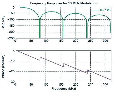 改善隔离系统线性度的一种常见方法是将ADC移至隔离栅的另一侧并隔离数字信号。在许多情况下,这需要将串联ADC与数字信号隔离器结合使用。由于对电机电流反馈存在高频的特殊要求,以及需要对驱动保护进行快速响应,因此可选择Σ-Δ型ADC。Σ-Δ型ADC配有一个可将模拟信号转换为一位码流的线性调制器,其后配备可将信号重构为高分辨率数字字的数字滤波器。此方法的好处是可使用两种不同的数字滤波器:较慢的用于高保真反馈,另一个低保真快速滤波器用于保护逆变器。在图2中,绕组分流器用于测量电机绕组电流,隔离式ADC用于在隔离栅上传输10 MHz数据流。Sinc滤波器可将高分辨率电流数据提交给电机控制算法,该算法会计算施加所需逆变器电压需要的逆变器占空比。另一个低分辨率滤波器可检测电流过载,并在出现故障时将跳变信号发送至PWM调制器。Sinc滤波器频率响应曲线解释说明了合适的参数选择如何能够使滤波器抑制电流采样中的PWM开关纹波。