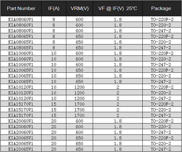 实亿国际 KIA半导体的SiC二极管利用了碳化硅出色的物理特性,其动态反向恢复特性比硅好4倍、正向导通电压VF比它低15%。