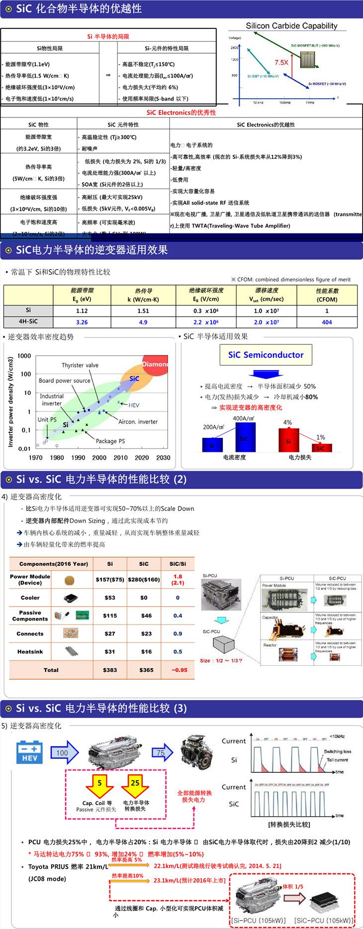 具 体来看,其整体优势主要体现在下面几个方面:一是SiC功率器件带来开关损耗的大幅降低,可以大大提高系统的效率;二是因为SiC器件无反向恢复、散热性 能好等特点,减少周边器件的使用或者采用体积较小的器件,线路也得到优化,从而在整体上缩减了系统尺寸;最后,因为效率提高、器件精简从而获得了系统整体 成本的节约。
