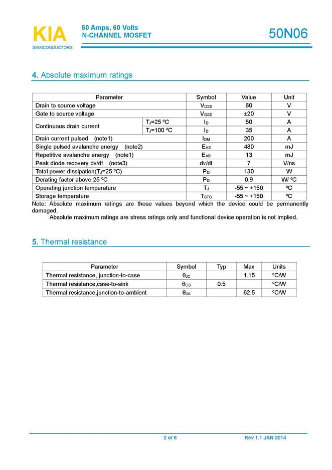 名称: KIA50N06