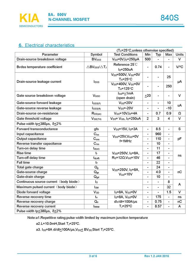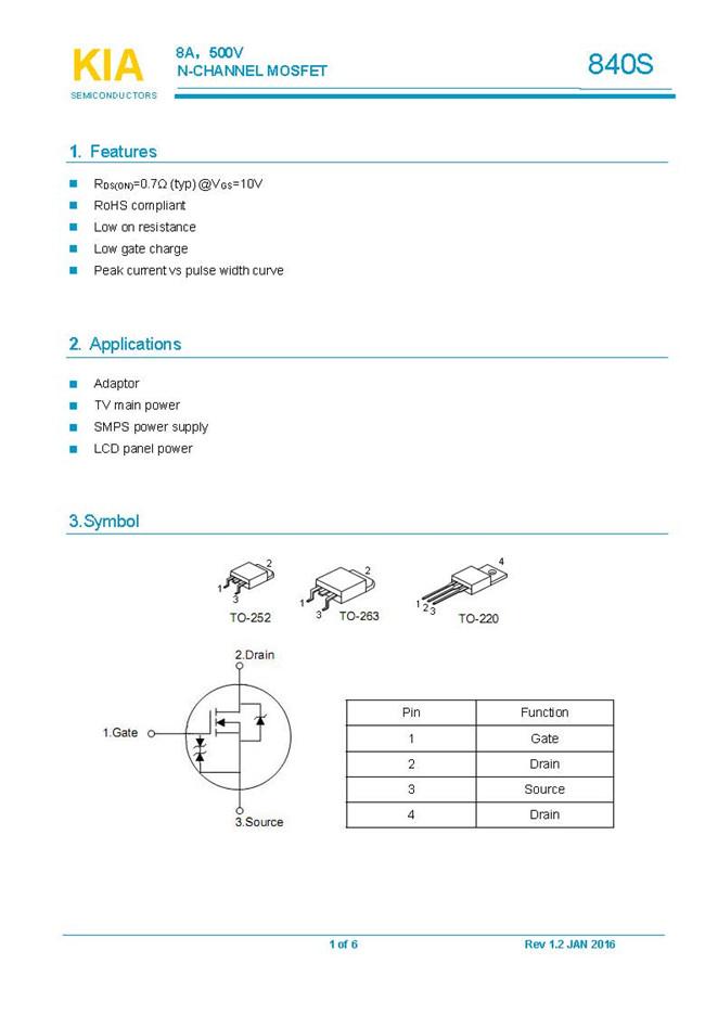 参数: ID(A): 8 BVDSS(V): 500 RDS(ON): 0.9 Qg(nC): 24 Package: TO-252、TO-263、TO-220 TO-220F