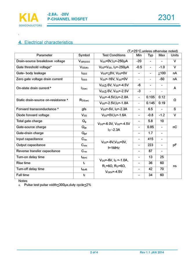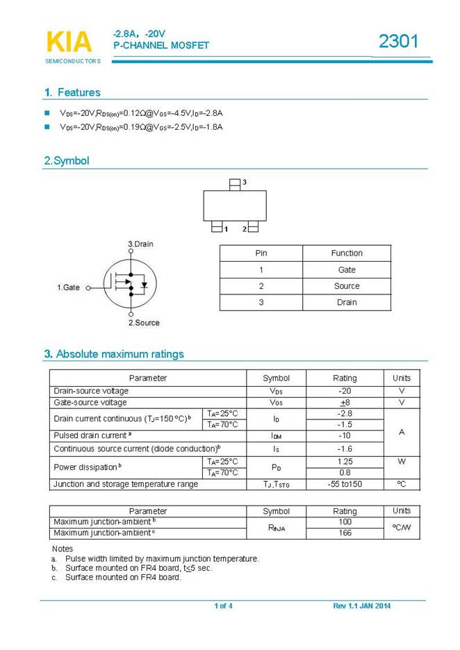 参数: ID(A): -2.8 BVDSS(V): -20 RDS(ON): 0.19 Qg(nC): 10 Package: SOT-23