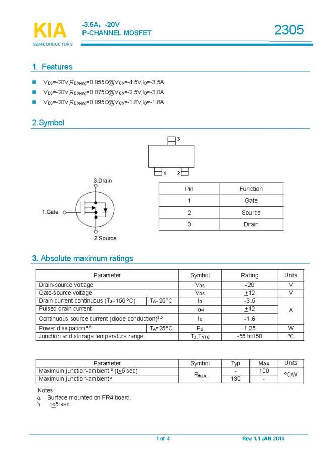 参数: ID(A): -3.5 BVDSS(V): -20 RDS(ON): 0.09 Qg(nC): 15 Package: SOT-23