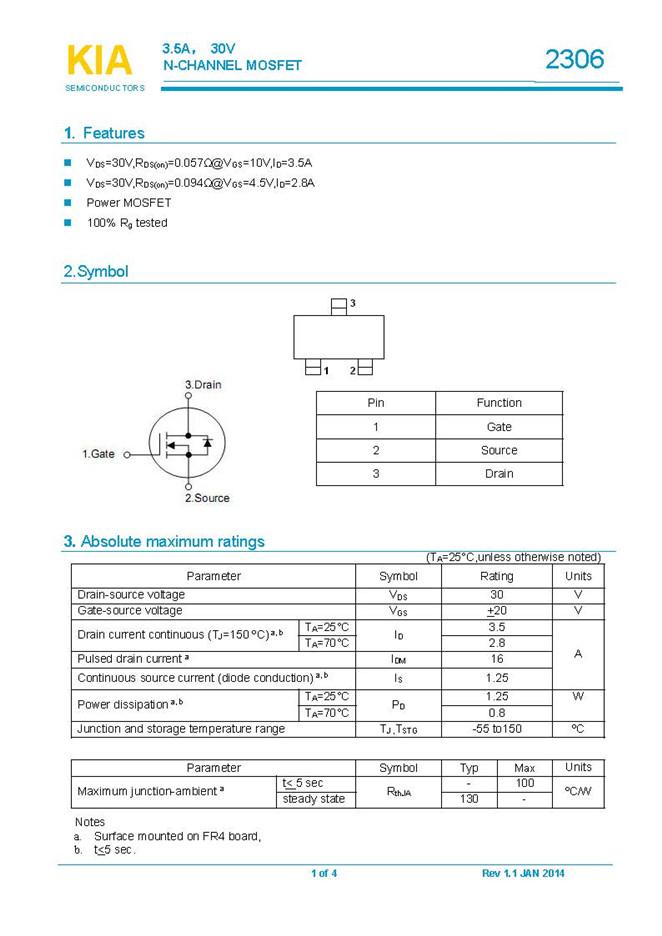 参数: ID(A): 3.5 BVDSS(V): 30 RDS(ON): 0.057 Qg(nC): 7 Package: SOT-23
