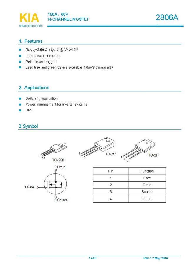 实亿国际参数: ID(A): 162 BVDSS(V): 60 RDS(ON): 0.0045 Qg(nC): 130 Package: TO-220、TO-3P、TO-247