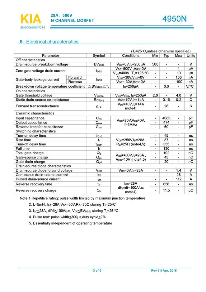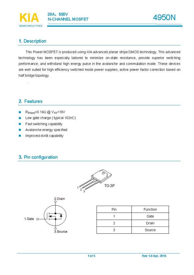 参数: ID(A): 28    BVDSS(V): 500    RDS(ON): 0.16    Qg(nC): 102    Package: TO-3P