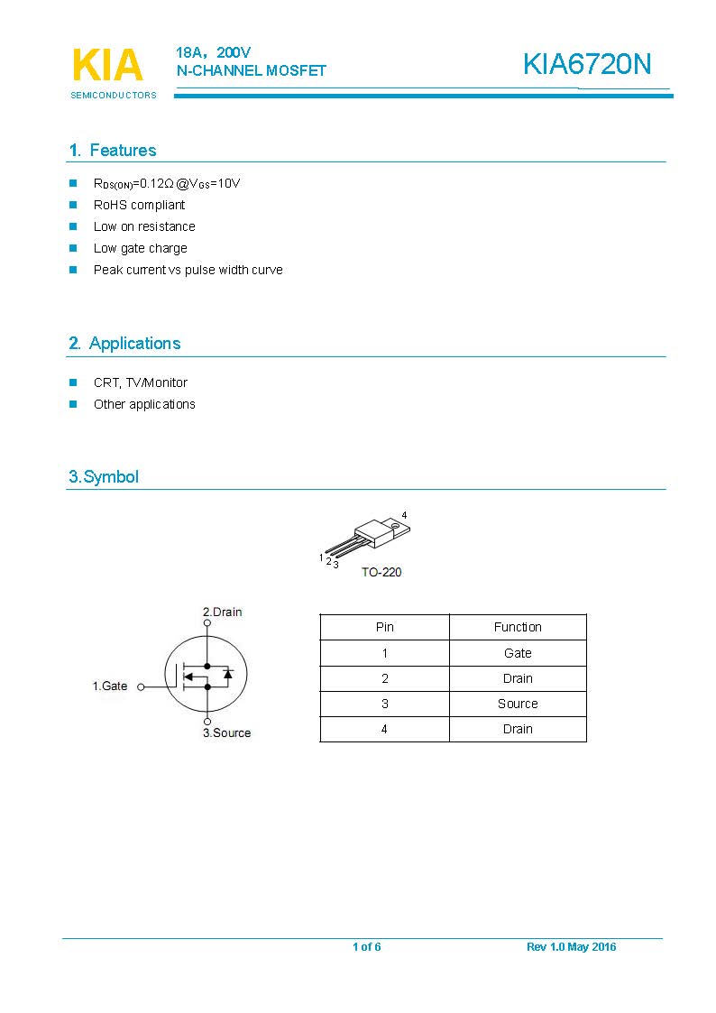 参数: ID(A): 18 BVDSS(V): 200 RDS(ON): 0.12 Qg(nC): 34 Package: TO-220