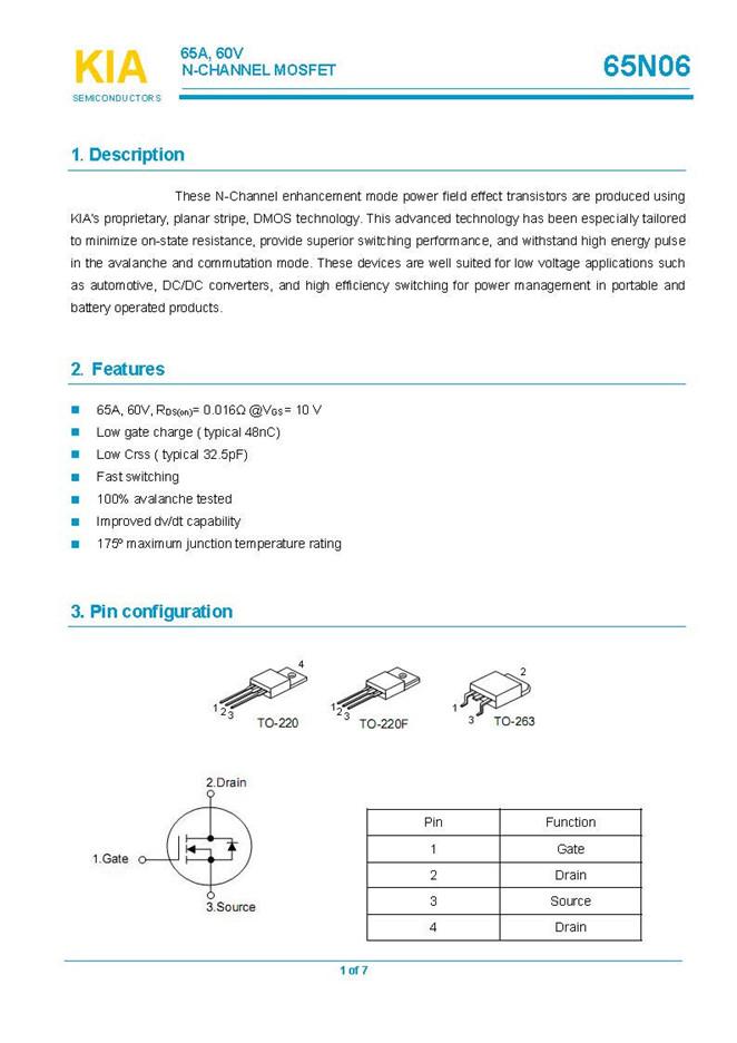 实亿国际参数: ID(A): 65 BVDSS(V): 60 RDS(ON): 0.016 Qg(nC): 40 Package: TO-220、TO-220F、TO-263