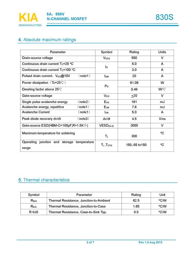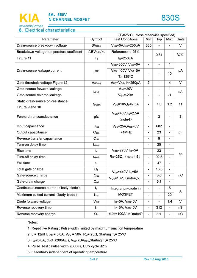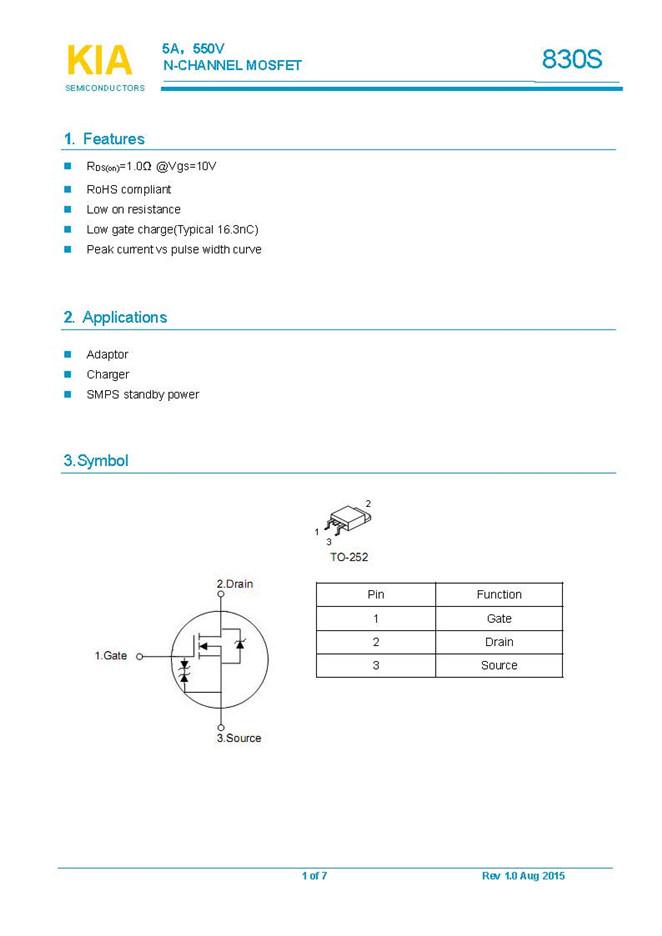 参数: ID(A): 5 BVDSS(V): 550 RDS(ON): 1 Qg(nC): 16.3 Package: TO-252