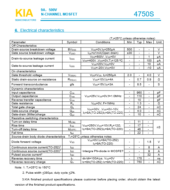 参数: ID(A): 9 BVDSS(V): 500 RDS(ON): 0.7 Qg(nC): 24 Package: TO-252 TO-220