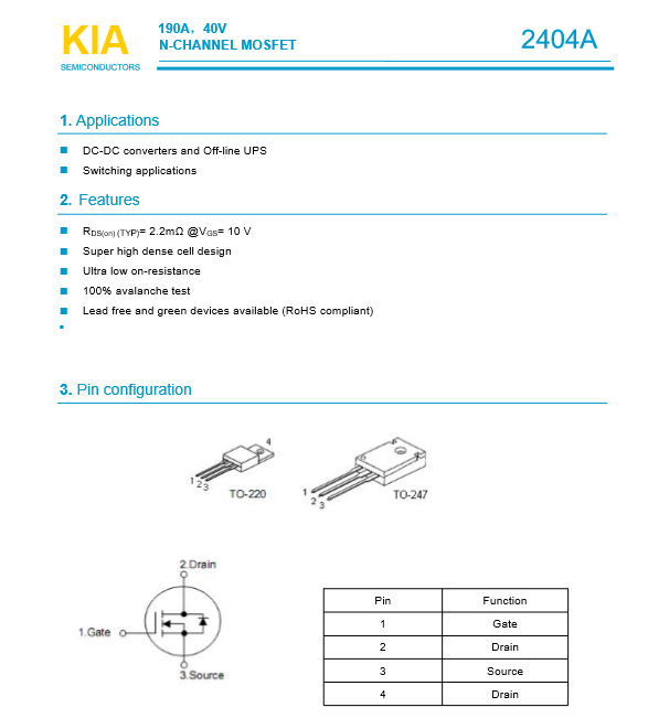 实亿国际参数: ID(A): 190 BVDSS(V): 40 RDS(ON): 0.0022 Qg(nC): 120 Package: TO-220