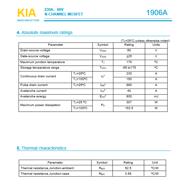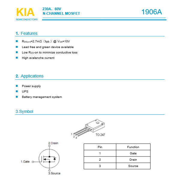 参数: ID(A): 230 BVDSS(V): 60 RDS(ON): 0.0027 Qg(nC): 172 Package: TO-247