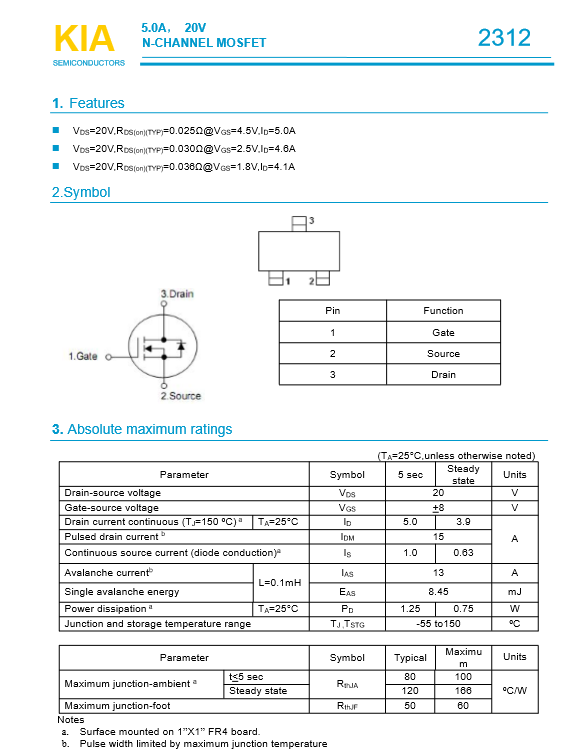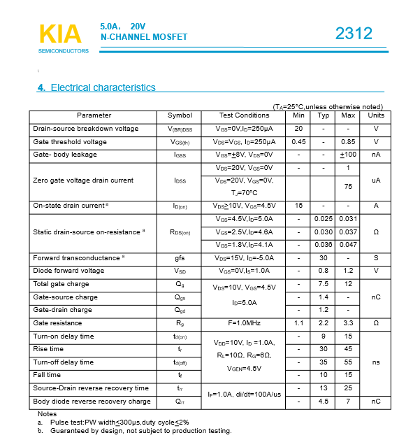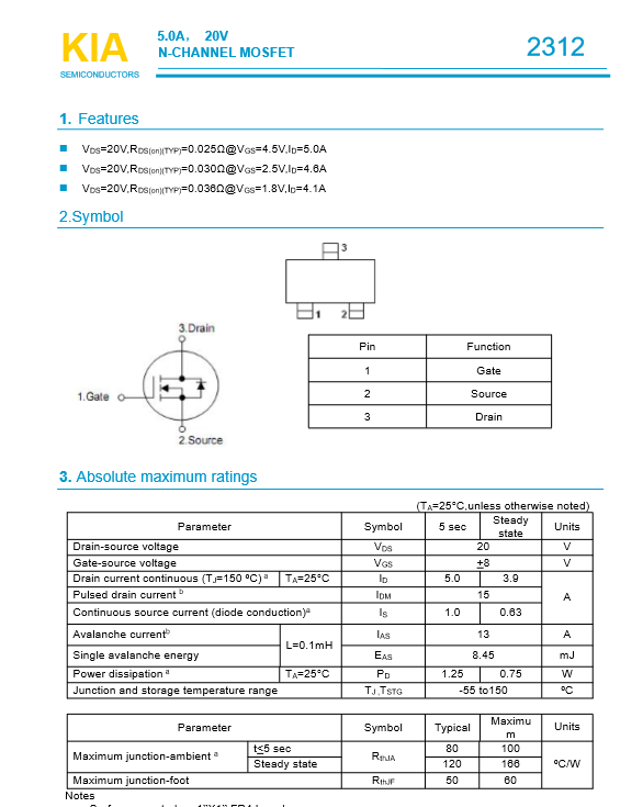 参数: ID(A): 4.9 BVDSS(V): 20 RDS(ON): 0.031 Qg(nC): 7.5 Package: SOT-23