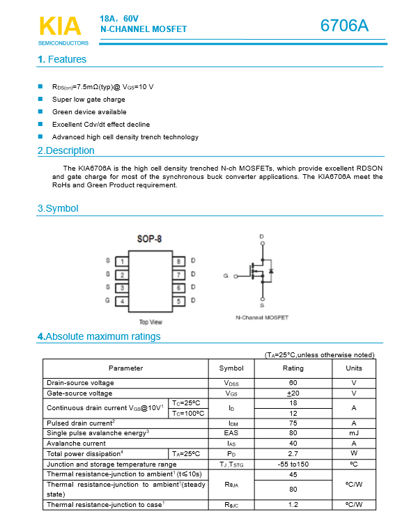实亿国际参数: ID(A): 18 BVDSS(V): 60 RDS(ON): 0.0075 Qg(nC): 57 Package: sop-8