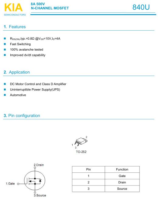 实亿国际参数: ID(A): 8 BVDSS(V): 500 RDS(ON): 0.9 Qg(nC): 17.8 Package: TO-252
