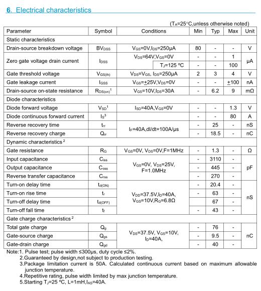 实亿国际参数: ID(A): 80 BVDSS(V): 80 RDS(ON): 6.2 Qg(nC): 76 Package: TO-263、252、220