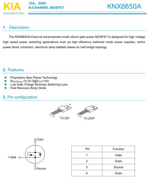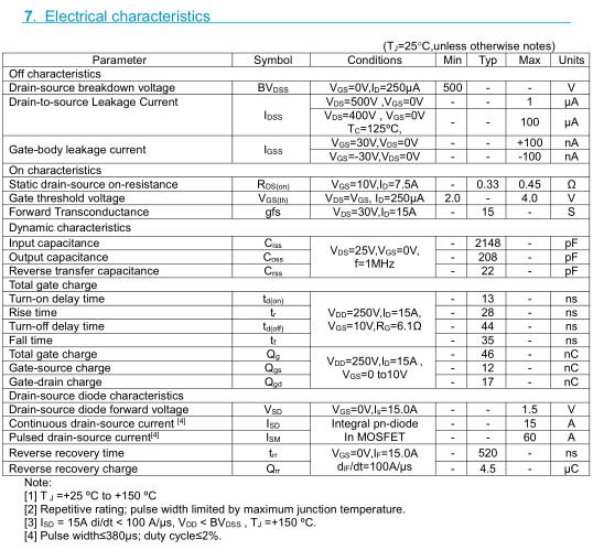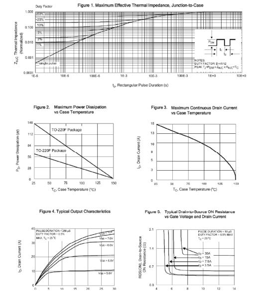 参数: ID(A): 15 BVDSS(V): 500 RDS(ON): 0.33 Qg(nC): 46 Package: TO-220F