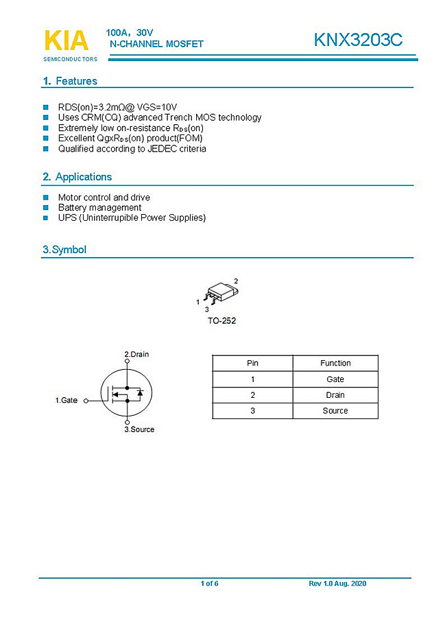 参数: ID(A): 100 BVDSS(V): 30 RDS(ON): 3.2 Qg(nC): 68 Package: TO-252