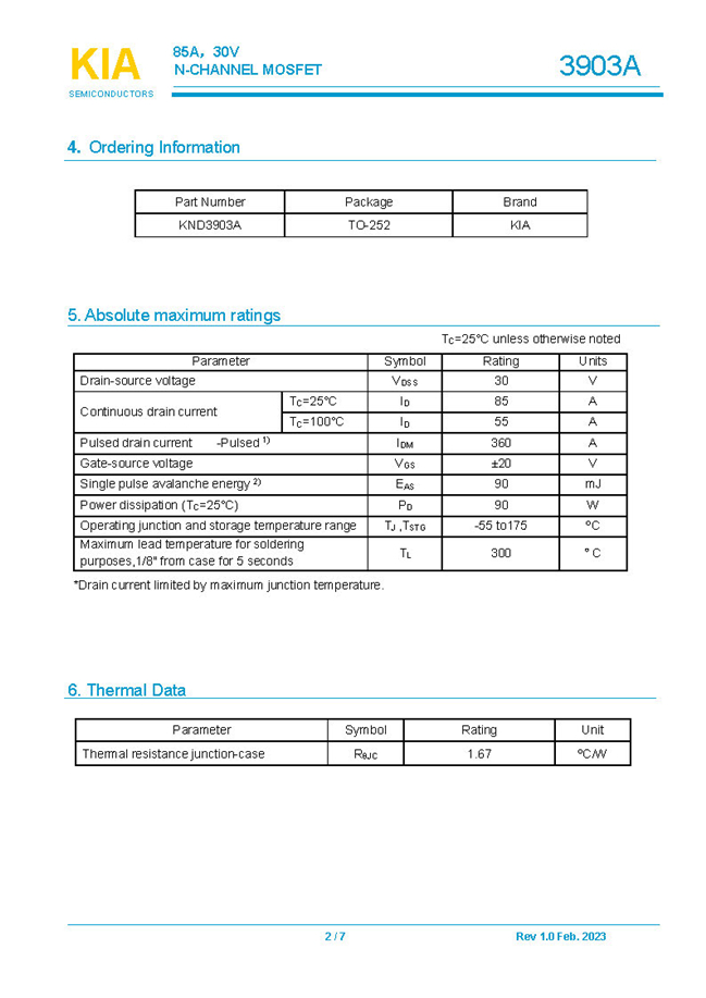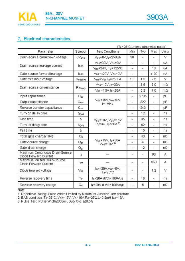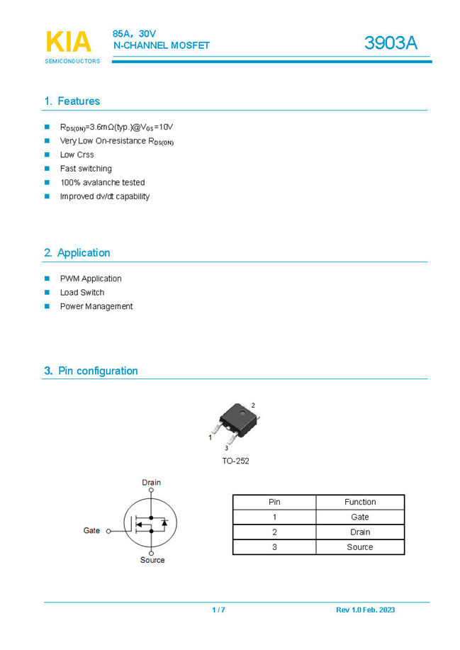 参数: ID(A): 85 BVDSS(V): 30 RDS(ON): 3.6 Qg(nC): 40 Package: TO-252