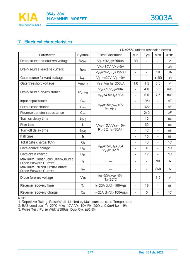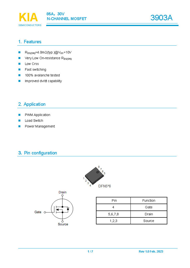实亿国际参数: ID(A): 85 BVDSS(V): 30 RDS(ON): 4 Qg(nC): 40 Package: DFN5*6