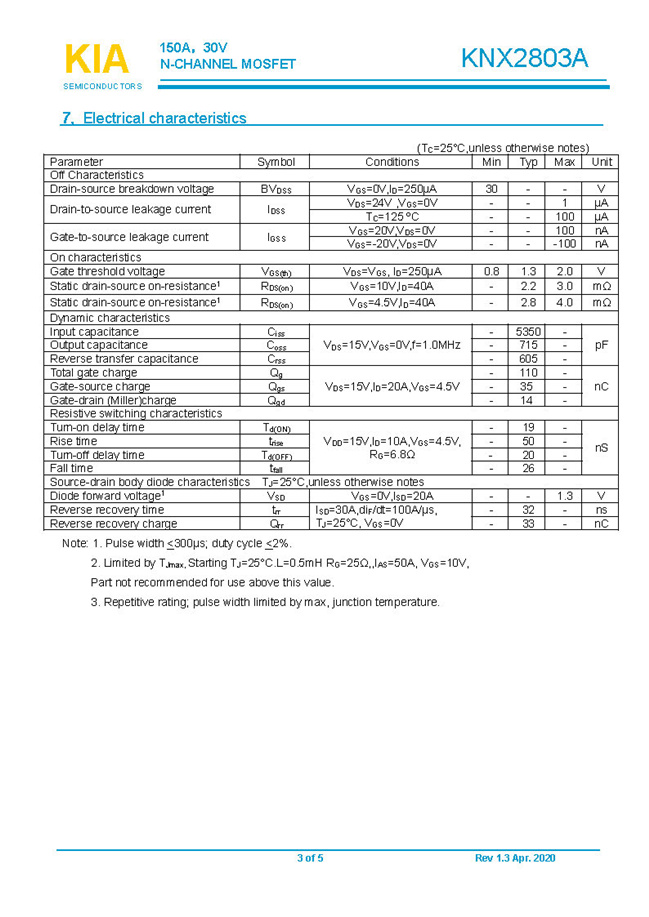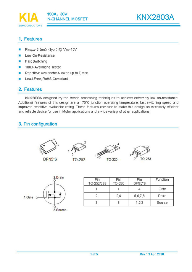 实亿国际参数: ID(A): 150 BVDSS(V): 30 RDS(ON): 2.2 Qg(nC): 110 Package: TO-252.TO-220.TO-263.DFN5*6